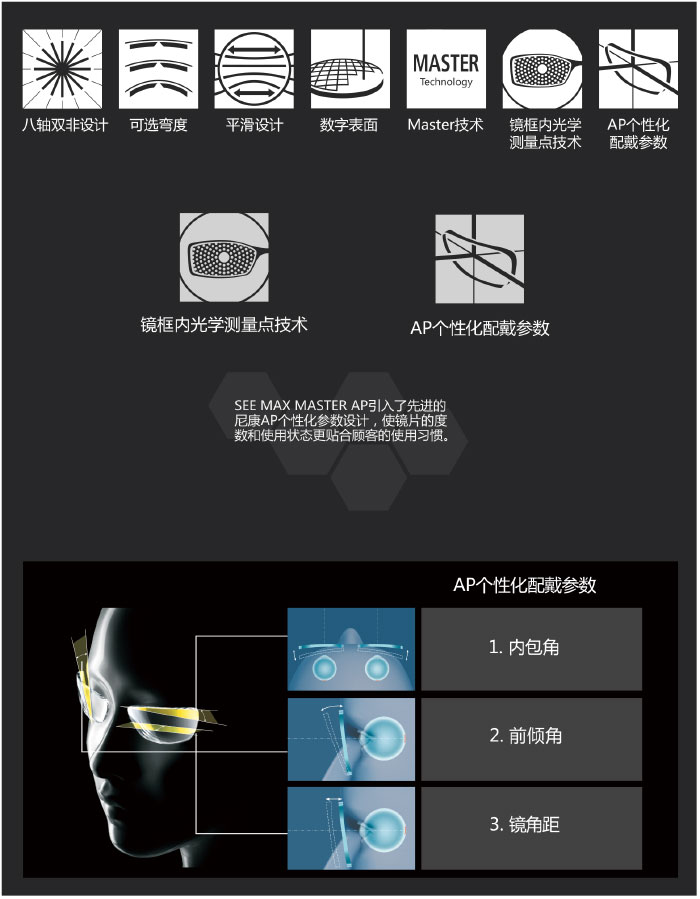 引入了先進(jìn)的尼康A(chǔ)P個(gè)性化參數(shù)設(shè)計(jì),使鏡片的度數(shù)和使用狀態(tài)更貼合顧客的使用習(xí)慣。彎度可選性,符合多樣的框架外型,滿足不同配戴者的需求。并且保持了獨(dú)特的鏡框內(nèi)光學(xué)質(zhì)量點(diǎn)技術(shù)特點(diǎn),該技術(shù)是在鏡框內(nèi)設(shè)計(jì)1000個(gè)光學(xué)測(cè)量點(diǎn),確保鏡片性能的穩(wěn)定和光學(xué)質(zhì)量高度精準(zhǔn)。